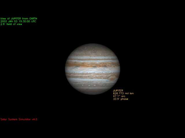 Simulation JPL Jupiter le 3 janvier 2002 à 19h30 UTC