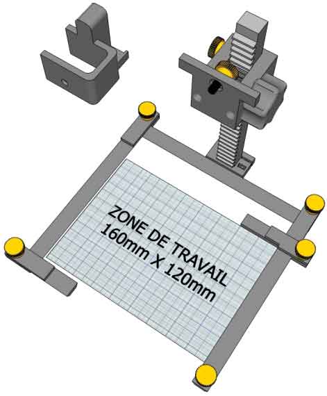 La zone de travail est limitée au maximum à 16cm X 12cm pour ne pas se retrouver avec un support encombrant et difficile à ranger.