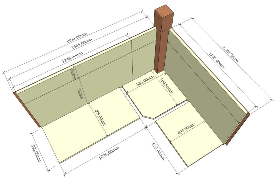 L'arrière de la banquette sera fermé par 2 panneaux de contreplaqué de 6mm d'épaisseur. Des plaques de polystyrène d'une épaisseur de 30mm constituerons l'isolation du refuge.