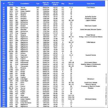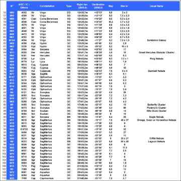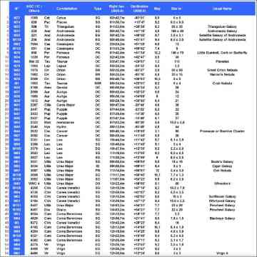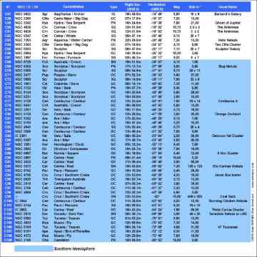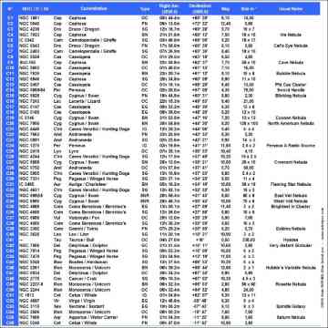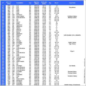 - Abell, IC, Melotte, NGC and Sharpless Object Sheets.