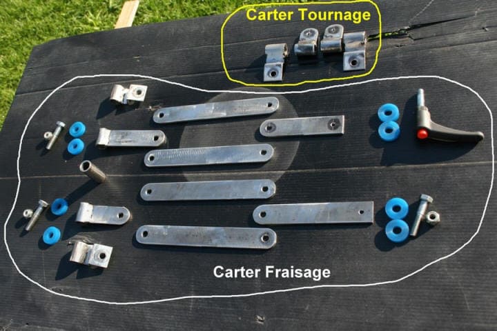 Le principe est le même sauf que le carter est fixé sur un chariot se déplaçant sur la barre supérieure du châssis.