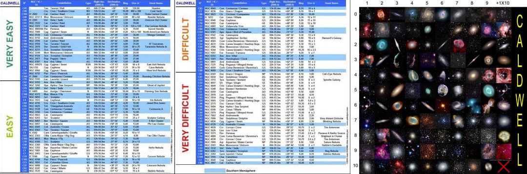 CALDWELL objects in color - Tables of objects classified by difficulty.