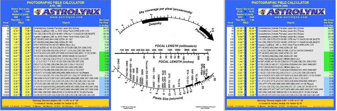 - Front -> Messier color images + Photographic field calculation sensor 1.