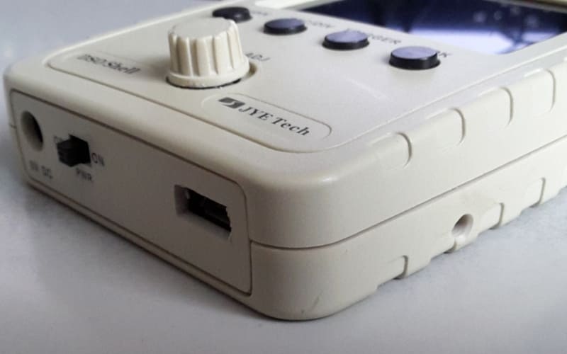 J'ai essayé un troisième montage qui fonctionne depuis début 2021. Je l'ai mis en test après une première recharge depuis début mars 2021. J'allume l'appareil toutes les 2 ou 3 semaines pour un test de quelques minutes. J'ai également fait 2 utilisations de 5 à 10 minutes chacune. Nous sommes début juillet (4 mois) et je n'ai toujours pas rechargé la batterie. Le démontage de l'oscilloscope pour prendre quelques photos, a été le prétexte pour mesurer la tension de la batterie. Elle était de 3,98V. Je continue l'essai jusqu'à la nécessité d'une charge. Je peux d'ores et déjà dire que ce montage est le bon.