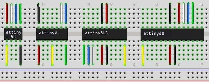 Les codes pour ATtiny85, ATtiny84, ATtiny861 et ATtiny88 se trouvent respectivement sur les pages 3, 4, 5 et 6.
