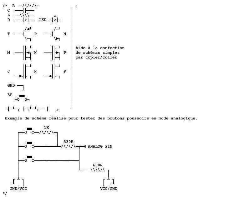 A la suite de l'entête, vient le schéma correspondant au code. Vous trouverez les symboles que j'utilise à la fin de cette page.