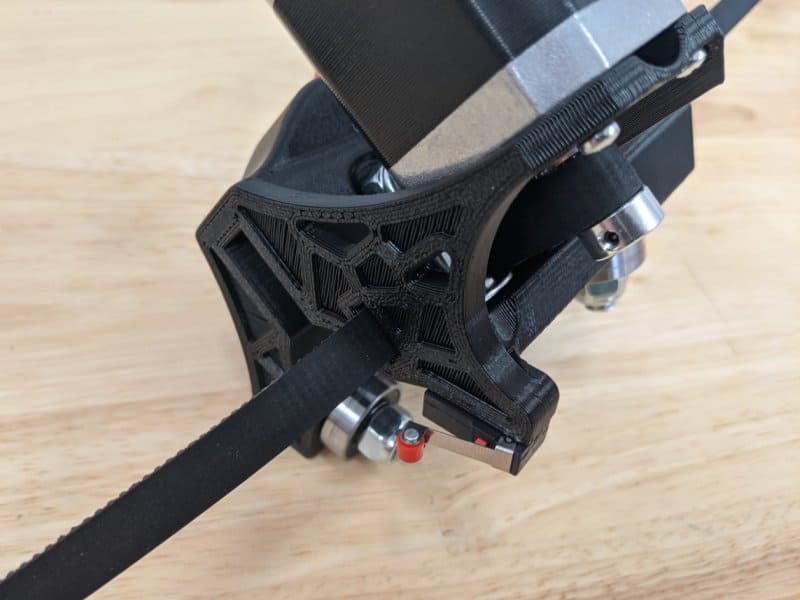 Si vous ajoutez les courroies maintenant, ce sera plus facile que d'aller à la pêche plus tard. Chaque axe a un ensemble de chariots miroir, c'est donc un moyen facile d'associer également les courroies.