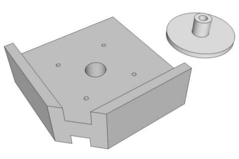 Le calibre principal est à double face, un côté pour percer les bouts de pieds au Ø5mm avec le canon de perçage approprié, et l'autre pour le perçage des dessus de tables au Ø10mm, sans le canon de perçage. Ce trou de Ø10 mm est prévu pour la mise en place de chevilles pour le maintien des tables. La seconde pièce ronde (canon de perçage) sert de réducteur pour le perçage au diamètre 5 mm, pour fixer les rallonges de pieds supérieur. Elle se positionne simplement sur le calibre principal.