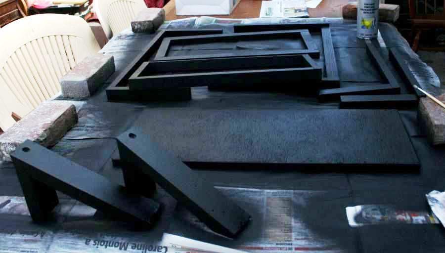 Les pieds de la table du bas sont découpés à une longueur de 15 cm, suffisante dans