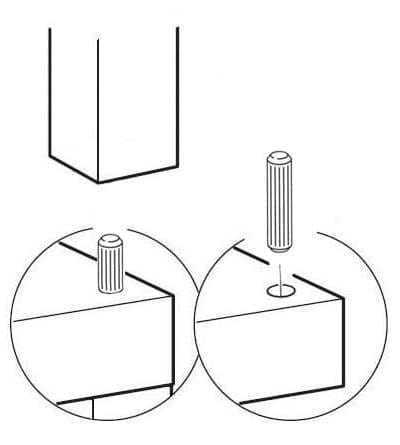 à droite, montage des chevilles des 2 plateaux inférieurs