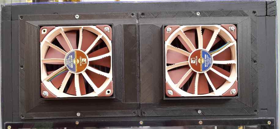 J'imprime du PLA depuis près de 4 ans avec une imprimante 3D situé juste à côté de moi dans le bureau. N'ayant pas eu de réponse à ce problème de santé, j'ai donc raisonnablement pensé que la mise en boîte de l'imprimante 3D ne pouvait plus être retardée. Début 2020, donc l'année suivante, je reprends le projet. J'invite tous les pratiquants de l'impression 3D à considérer cette protection comme indispensable. J'avais bien entendu déjà pensé à une filtration de l'air dans mon projet, donc la conception n'est pas remise en question, sinon à renforcer l'étanchéité et parfaire la filtration. Pour ce faire, j'ai commandé 2 ventilateurs NOCTUA NF-F12 PWM 120mm PREMIUM (Tout autre modèle peut faire l'affaire) et deux filtres d'habitacle Peugeot 807 de 406mm X 165mm épaisseur 32mm. L'un avec filtration pollen en entrée, et l'autre, au charbon actif coté ventilateur en sortie. La marque du véhicule a peu d'importance seul la dimension des filtres doit être suffisante pour le débit d'air. Il suffira d'adapter l'encastrement en fonction du filtre employé. Je précise pour ceux qui n'ont pas exploré le site, j'utilise une Prusa i3 P3Steel qui était un classique de l'impression voici 3 ans, maintenant, je ne sais pas, il en existe tellement...