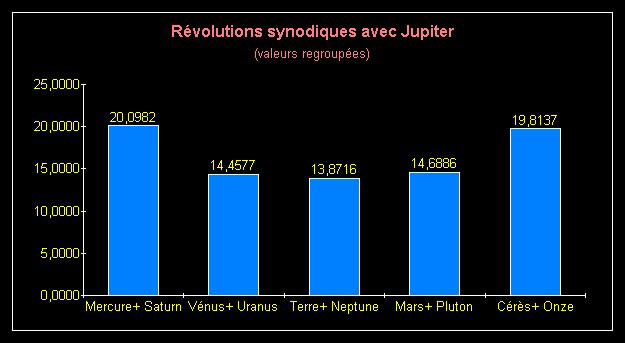 Attribuons à ce rapport les valeurs 14 et 21 ; dans cette hypothèse, les valeurs de ces révolutions sidérales sont pratiquement égales à, respectivement : 14 et 21 fois celle de Jupiter. Toujours dans cette hypothèse, la valeur respective pour Uranus est égale à 7.