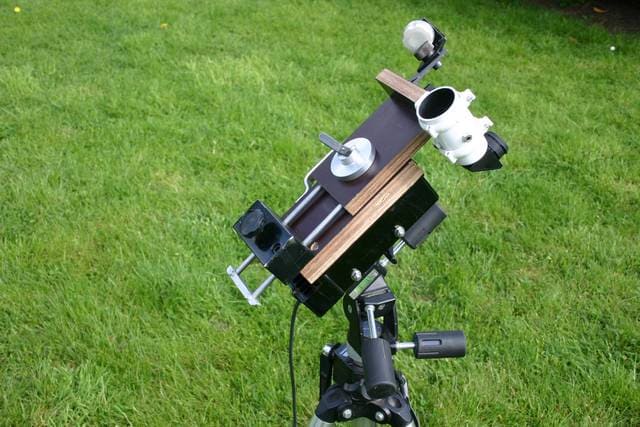 Le PhotoLynx en situation sur son pied. Allez on règle le chercheur et il reste à attendre la nuit pour faire la mise en station.