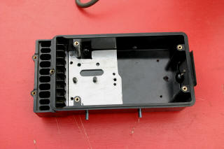 Une plaque d'alu est fixée par rivet POP à l'intérieur du boîtier pour renforcer la fixation de l'attachement au pied photo. Comme on ne le voit pas sur la photo, les vis doivent être courtes, une chute de plastique a été mise en place avant mise en place du mécanisme. Ne vous préoccupez pas des vis apparentes de chaque côté du boîtier, cela concerne le deuxième mode d'utilisation de l'instrument et ne sont pas utiles si vous mettez en place cette première solution.