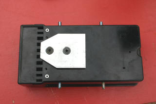ATTENTION ! une lumière a été découpée dans cette plaque d'alu pour libérer l'emplacement des deux bornes du moteur électrique qui fonctionne en 220V ! Prenez toutes les précautions d'usage pour ne pas provoquer de risques d'électrocution. Vérifiez bien l'isolement à l'aide d'un contrôleur. Rappel ; N'oubliez pas de mettre en place un plastique épais isolant avant de placer le mécanisme avec son moteur. A ce sujet, je ne plaisante pas !