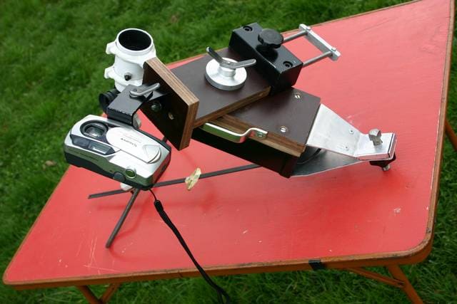 J'ai opté pour une version pliante et qui peut être mise en station sur toute surface plane, de préférence une table, stable, bien évidemment. Pour la photo, une table pliante de camping a été utilisée, je la déconseille en situation réelle.