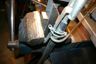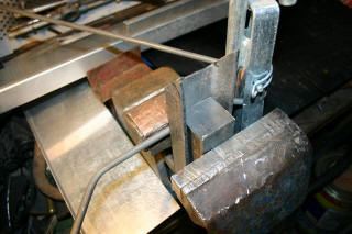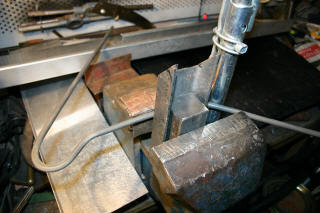 Le fil de 8mm de diamètre a été formé à l'étau pour créer un large pied pour la stabilité de l'instrument. Voir les photos.