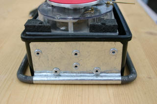 La tôle d'acier galvanisé de 0,5mm d'épaisseur a servi à confectionner la charnière du pied principal. Vous pouvez utiliser des rivets POP pour la fixation mais ATTENTION ! Ne serrez pas à fond sous peine de détruire le boîtier en bakélite.