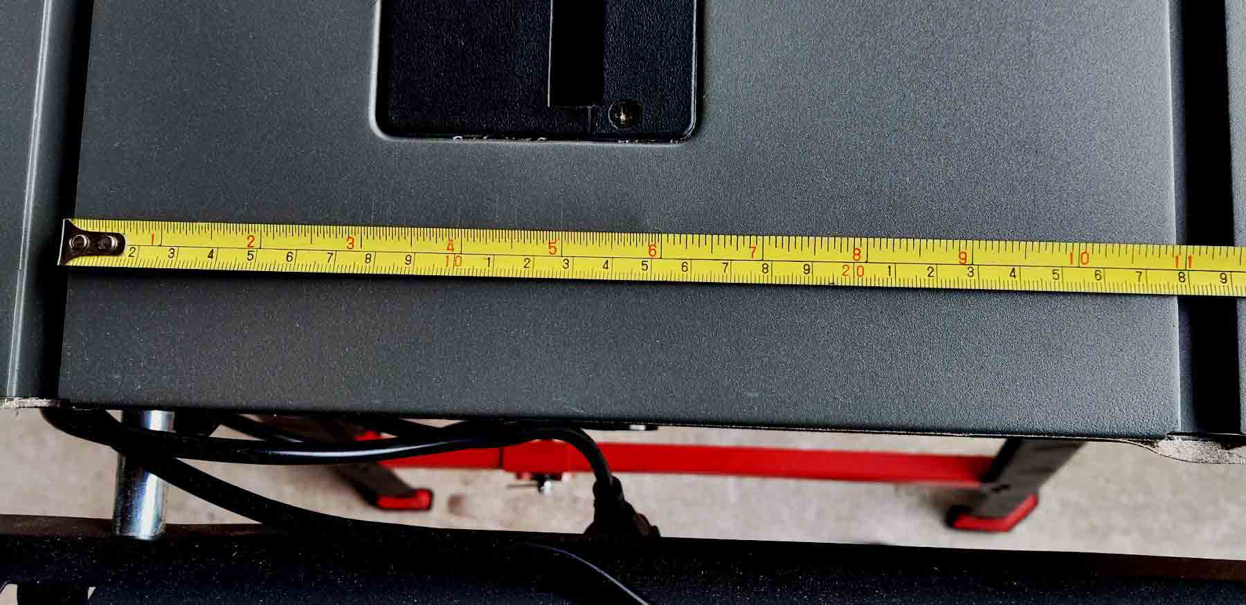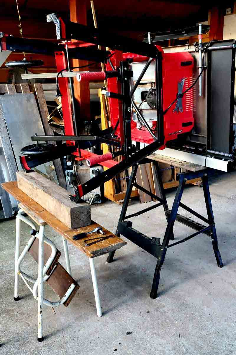 Couchez La scie sous table sur deux tréteaux, bien calée avec des planches (voir photo ci-dessus).
