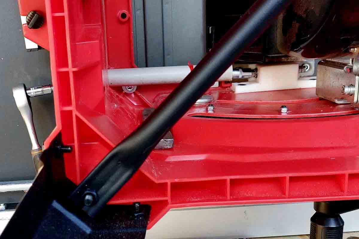 J'ai ajouté un tube IRL de Ø20mm pour guider la clé de réglage. Placé face à la table,
