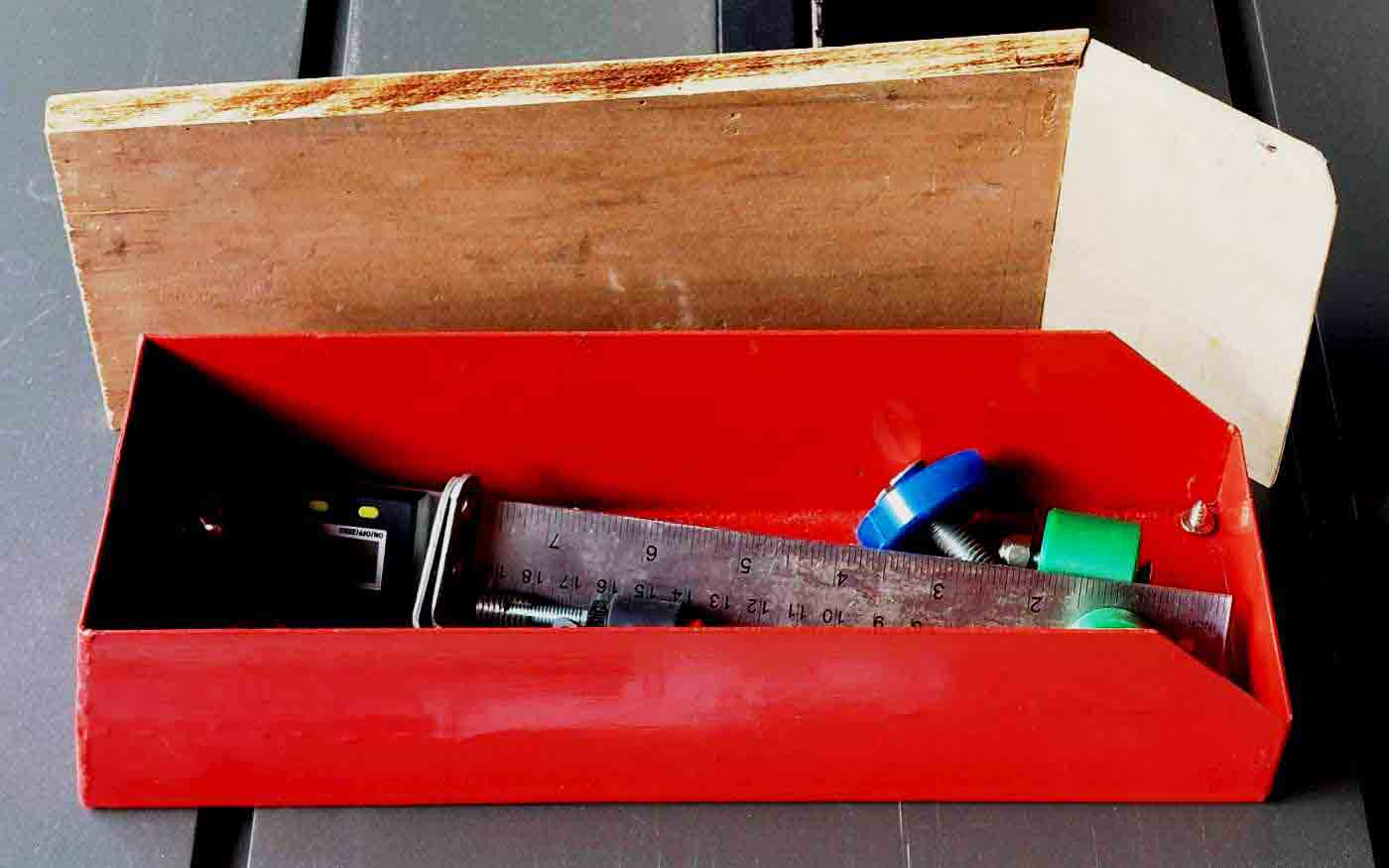 Une petite boîte à outils sera ajoutée sur le support de la scie EINHELL TS TC 2225 u afin d'avoir quelques outils utiles à portée de mains.