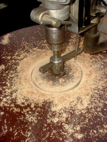 Fin du découpage, Mise en place du trépan et réglage pour loger un roulement conique à rouleaux.