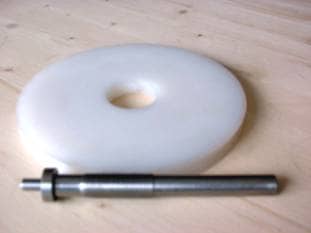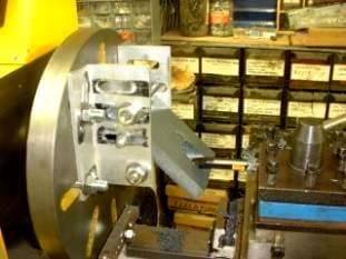 La vis de commande pré-usinée et la roue tangente ébauchée.