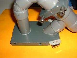 L'électronique sera placée dans un boîtier pour préserver l'ensemble de l'humidité et des court-circuits éventuels. Sur la photo on peut apercevoir les deux micro-rupteurs qui seront utilisés pour la sécurité. On peut également prévoir un petit boîtier relié par un câble au boîtier principal et servant de raquette de commande rapide pour faire le suivi. Et pourquoi pas la motorisation des deux axes afin d'assurer un suivi parfait...