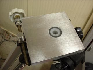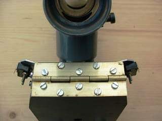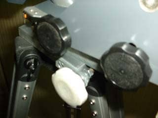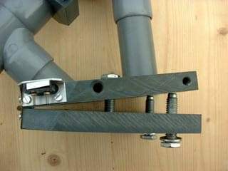 La platine inférieure est assemblée sur la table inférieure à l'aide d'une charnière piano solidement fixée. Trois trous sont taraudés dans la platine dans lesquels viennent les deux vis de réglage de latitude et la vis de blocage.